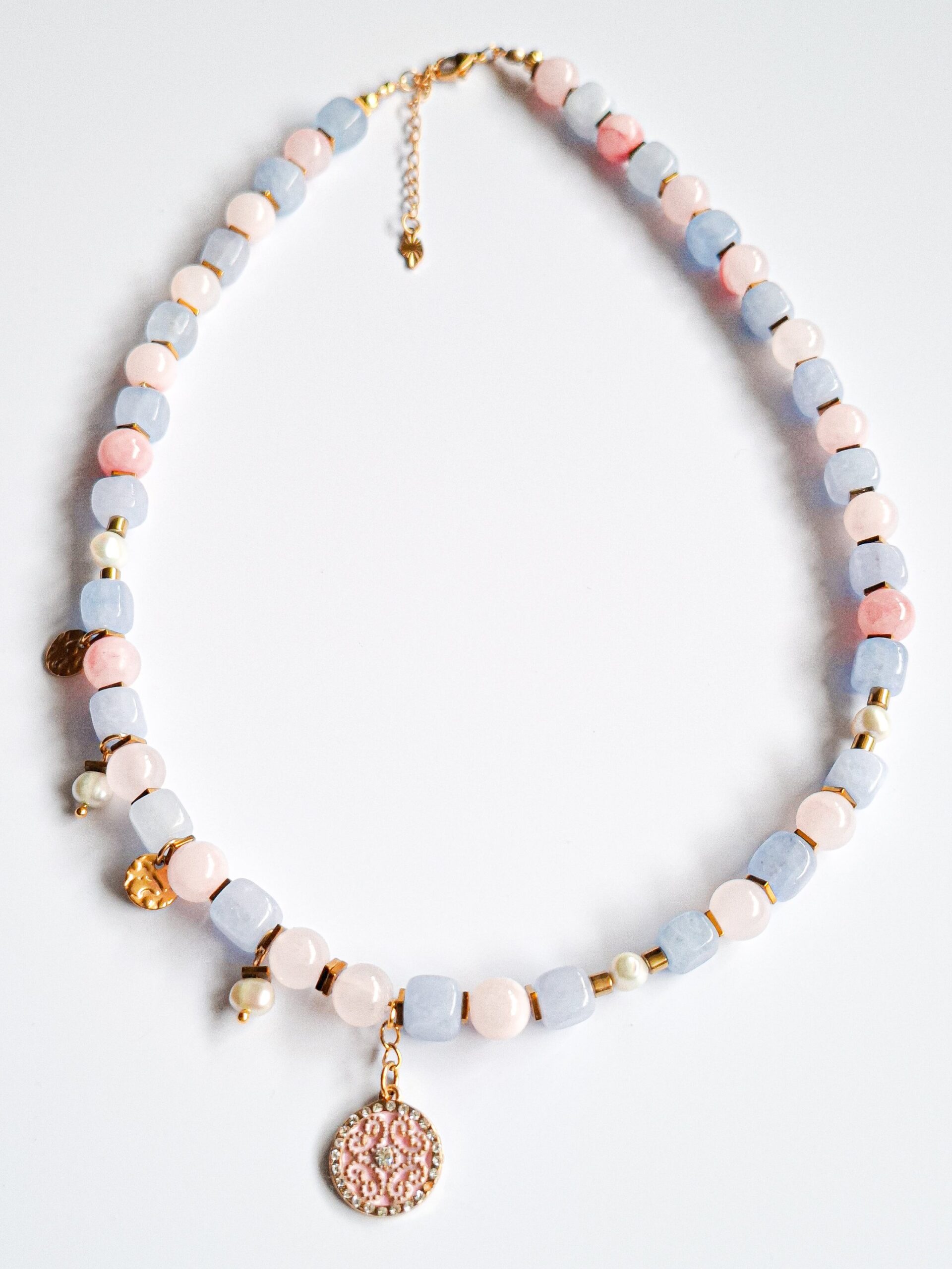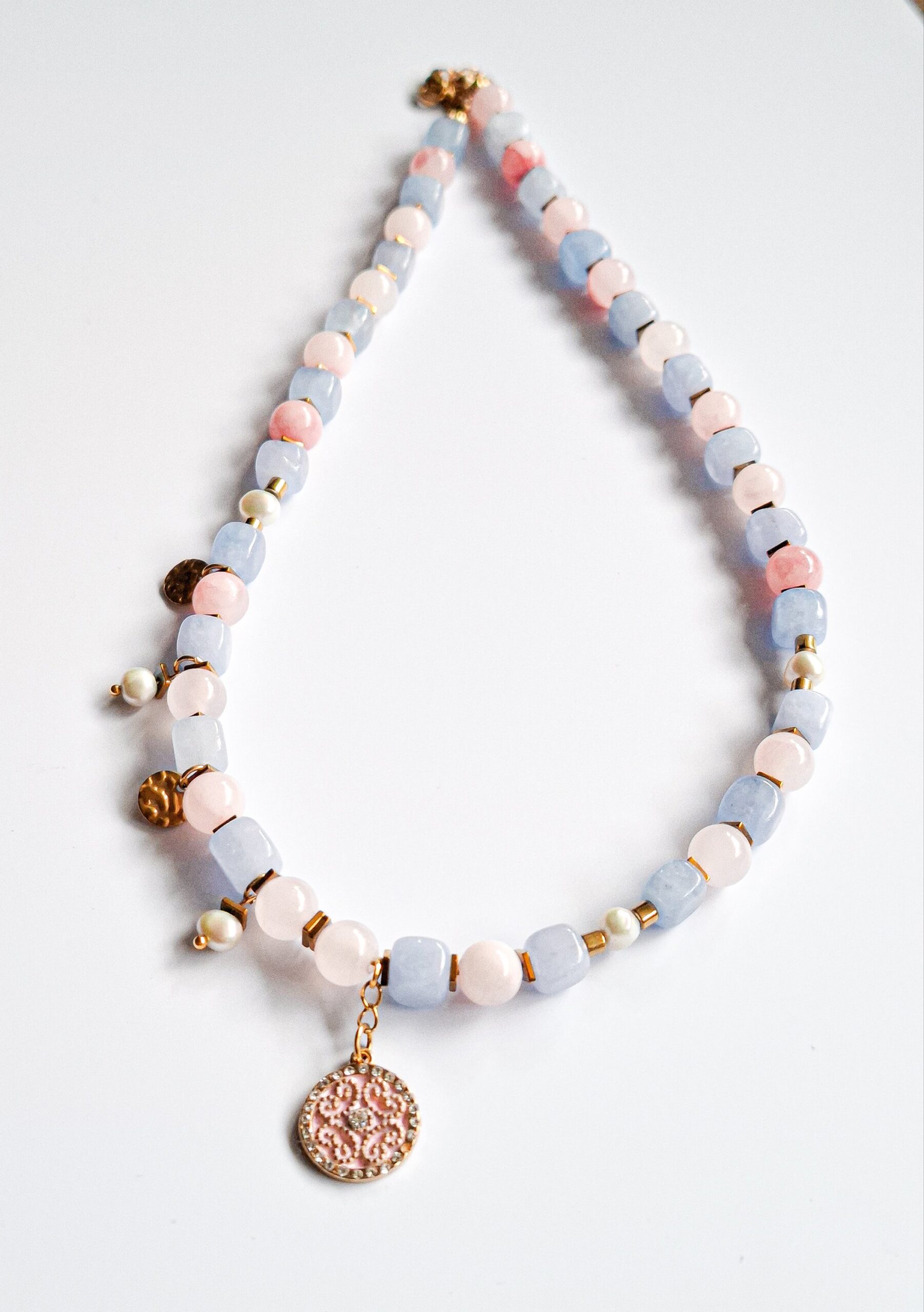 Ten naszyjnik został przeze mnie dodatkowo zakodowany na pewność siebie w byciu innym, niepasującym i autentycznym. Wspiera wyrażanie siebie bez potrzeby dopasowywania się, pomaga zaakceptować swoją inność i poczuć w niej wartość zamiast oporu.